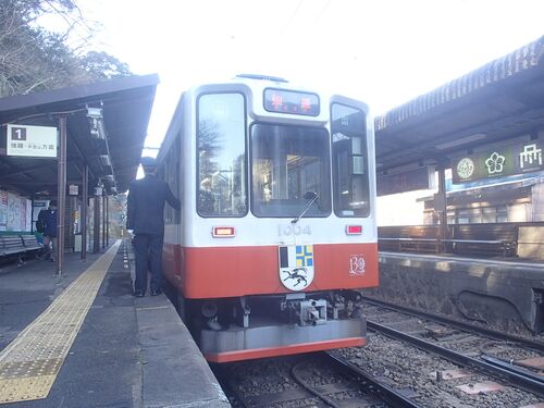 前回の続きです。 宮ノ下駅で旧型車両が並ぶという情報をキャッチした作者は、同業者の方と共に強羅行きに乗車。 宮ノ下駅に到着。 標高が上がったせいか、かなり寒く感じました。 それから数分後…、 モハ1形103+107号とモハ2形109号による3両編成が到着。 …