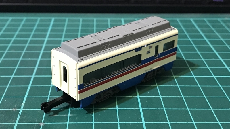 1号車、成田空港寄りの先頭車です。先頭車のドアの配置は2代目AE形も踏襲しています。こちらもパーツの構成はシンプルです。