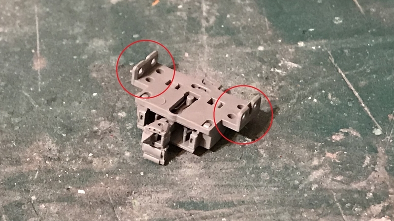 続いて電気連結器周り。2段のままなので1段にカットします。