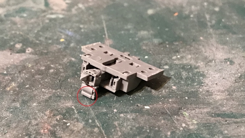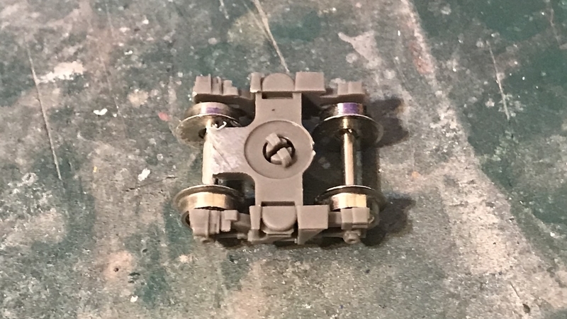 TN化にあたり、バンダイの走行台車ではカプラー部分が干渉するため、グリーンマックスの台車からカプラーを切断したものを用意します。*1