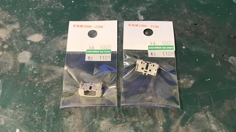 秋葉原にあるグリーンマックス・ザ・ストアで手に入れた京急新1000形・2100形用のスカートです。言わずもがなNゲージ用車両の修理用部品ですが、これを付ければさらにリアルになる!…という噂をTwitterで知り、中の人も一念発起。