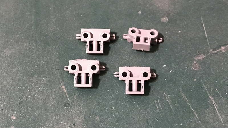 New HGシャーシとSHGシャーシ台車の加工はこれで完了です。続いてカプラー受け付きブロックを用意します。